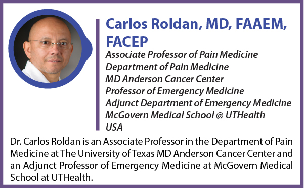 - 15:30 – 15:55: Challenges in Cancer Pain – Carlos Roldan, MD, FAAEM, FACEP
