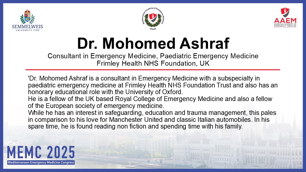 • 9:00: Overcrowding in Emergency Room /ED: Challenges and Strategies – Prof. (Dr.) Mohammed Yunus