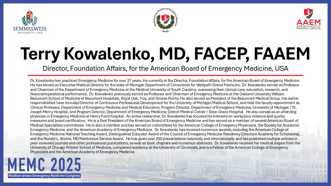 • 11:30 – 11:45: Greece: Training to Practice Emergency Medicine in Countries with No Formal Residency Program – The Greek Experience